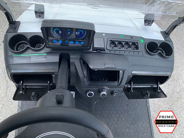 Evolution golf carts are the current industry-leading golf cart brand, coming standard from the factory with many features that other golf carts need purchased and installed. This includes a high-capacity lithium battery, two-tone color-matched seats, color-matched 14 inch rims, a backup camera, LED touchscreen, Bluetooth sound system, and more. Evolution carts are also already street legal, with a 17-digit VIN number – other golf carts often need to be registered and certified, while Evolution carts come street legal, and only need a tag and title after purchase. Read more about Evolution carts on our main website, Prime Golf Cars.